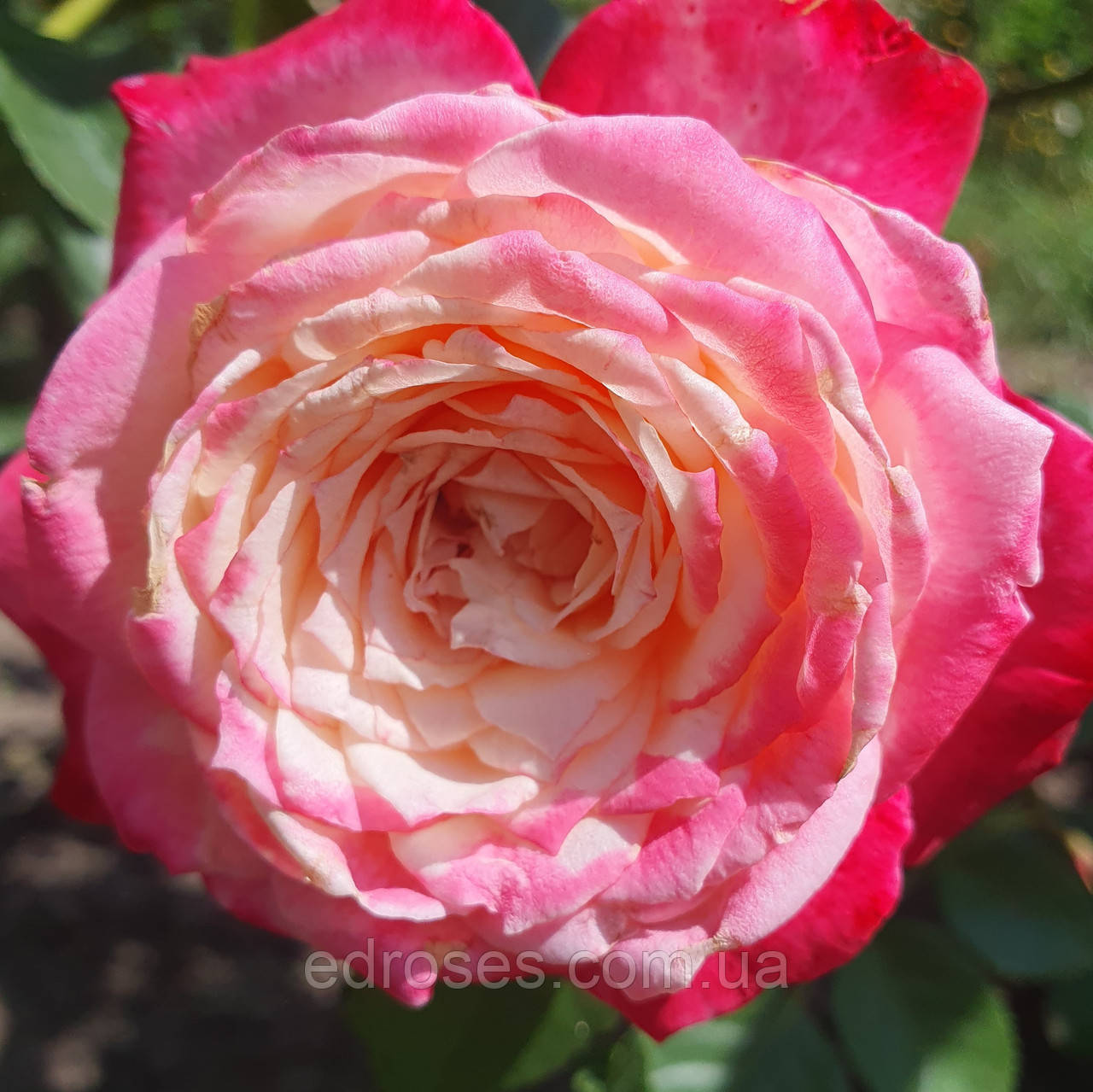 Крупноквіткова в'юнка троянда з ажурним ностальгічним квіткою в діаметрі до 12 см, з переливом кольору від білого до рожевого.